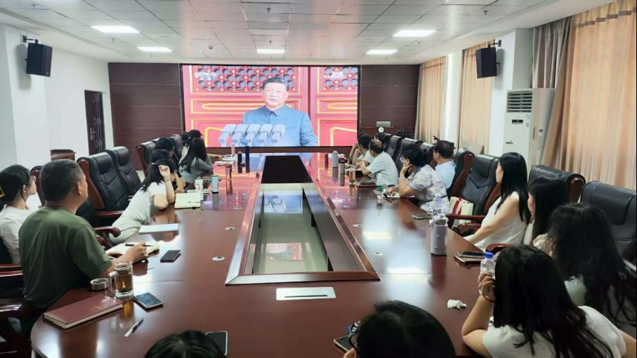 收看过程中,大家聚精会神、庄严肃穆,认真聆听习近平总书记发表的重要讲话,共同回顾中华儿女同仇敌忾、共赴国难的烽火岁月,深切缅怀为世界和平英勇献身的革命先烈。